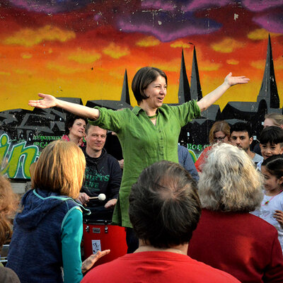 Drum Circle – Der Name ist Programm: Gemeinsam mit vielen anderen wird im Kreis sitzend auf Trommeln und anderen Rhythmusinstrumenten gespielt. Es geht um Spaß, Musik, Lebensfreude und Kommunikation. Das Alter, die Herkunft und die Vorbildung sind egal, es gibt kein Üben und kein Versagen, nur spontanes Musizieren. Bei dieser spannenden Erfahrung wird die Gruppe von einer Person begleitet, die im Englischen FACILITATOR (engl. „to facilitate“: helfen, erleichtern) genannt wird. Im deutschen Sprachraum benutzen wir meist den Begriff MODERATOR*IN. Diese Person hilft der Gruppe dabei, sich und das Instrument kennenzulernen und zunehmend unabhängig von der Anleitung miteinander Musik zu machen.